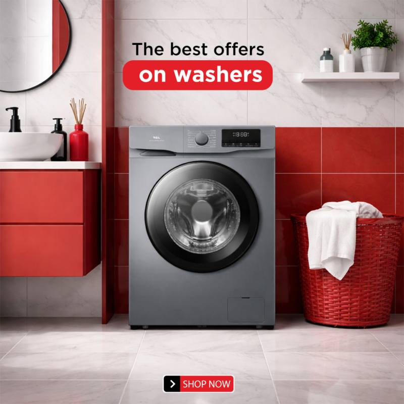 تي سي ال غسالة فتحة امامية 10 كيلو/ 80% تنشيف – فضي – انفيرتر 50/60 هرتز – محرك مباشر C2210FLG