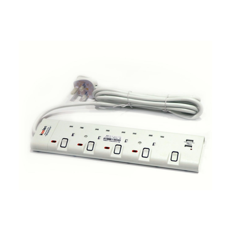 koolen 5 Outlet Power Strip, 5m Cable, White - 301100006