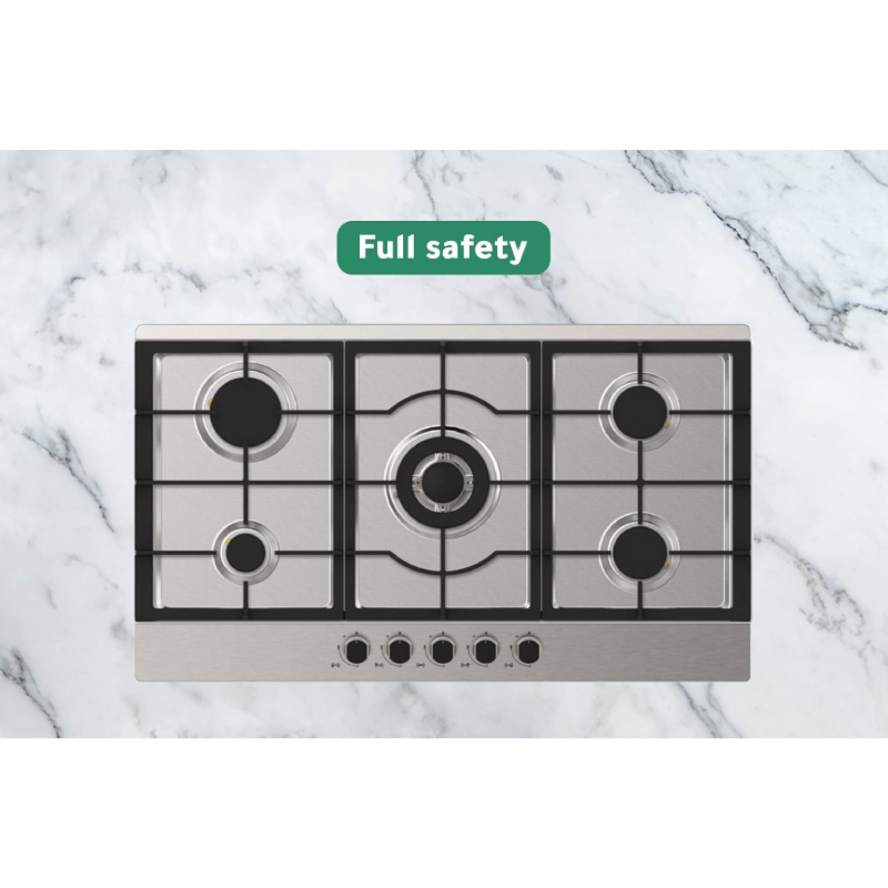 Midea Built-in Gas Hob – 5 Burners, 90cm, Auto-Ignition, Stainless Steel | Model 90-SQ005