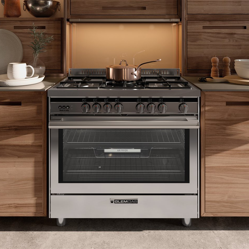 Cook like a pro with the Glem Gas ST967GIFSMF freestanding gas cooker. Featuring 5 burners, a multifunction gas oven with fan, and full flame safety devices, this 90×60 cm cooker is built for reliable performance and peace of mind. Its stainless steel body offers both durability and modern elegance.