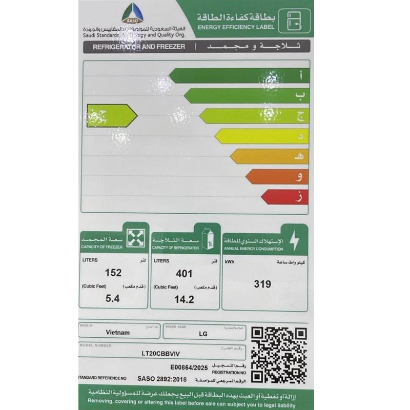 Upgrade your kitchen with the LG Double Door Refrigerator, offering a spacious 19.6 Cu.ft / 553L capacity ideal for families. Equipped with a Smart Inverter Compressor, it ensures efficient cooling, quieter performance, and long-lasting durability.