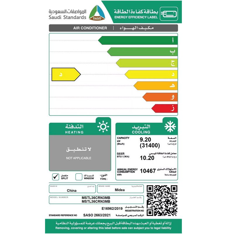 | مساحة التغطية التقريبية (م²) المساحات تقديرية وليست التزامًا فنيًا في الحالات التالية زوّد القدرة: شمس مباشرة واجهة زجاج كبيرة سقف عالي عدد أشخاص كبير |