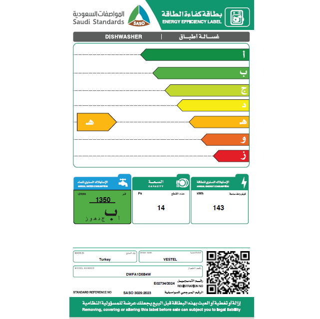فيستل – غسالة صحون, 5 برامج, ,14 مكان للتخزين -DWFA1D5B4W