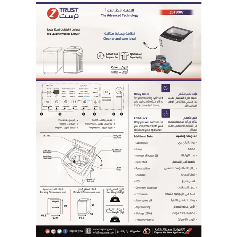 كن أول من يقيم “Z.trust Top Load Washing Machine, (8) kg, (8) programs, Pump – White” إلغاء الرد