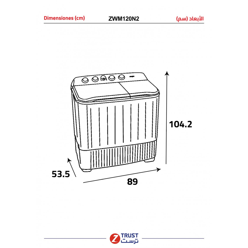 ز.ترست-غسالة حوضين، 10كيلو-غسيل ، 6كيلو-تجفيف- ZWM100N2
